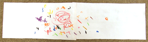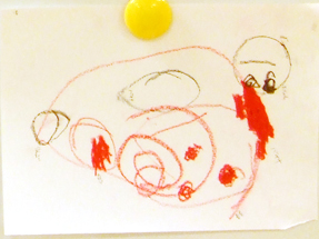 お母さんに、家での様子を聞いてみると、クレヨンにしても、鉛筆にしても、あまり持ったことがないという。今からでも遅くないから、自由にたくさん描かせてあげてください。あくまでも自由に。そして、指図はしない。お話しをよく聞いてあげる。
