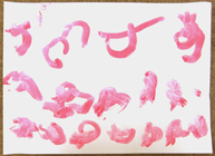 話を聞いてあげよう。どんどん言葉は出てくる。子どもたちはそうやって、自分が見出した意味を確かめているらしい。 手を動かしてできた結果(点や線や塊)に、自分の頭の中にあるものをあてはめていくのだから、これは、相当想像力を駆使しているということだ。
