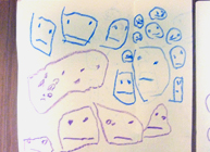 何度も何度も顔を描いて楽しむ。もういいんじゃない?と言いたくなるぐらいかわいい顔が並んでいく。ほうっておくと、何枚でも描きそうだ。