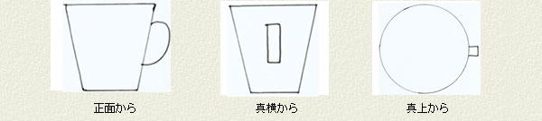 年長の勉強の課目に「四方観察」という項目がある。立体物を正面から、真横右から、真横左から、真上から見たらどんなふうに見えるかという勉強である。例えばカップの絵を描かせる。 |