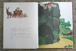 | 暗い画面に、恐ろしい顔つきのひげ面の大男が、いたいけな女の子をニタリと見据えながら、食事をしている。どう見ても、これからの希望が湧きそうにないが、女の子がにっこり笑っているのが気になる。人喰い鬼のような悪者退治には、強くて勇敢な若者か、賢い年寄りが、お似合いなのだが、この女の子は捕らわれの身なのだろうか・・・・ そう思いながら、絵本コーナーの片隅で、立ち読みを始めた。 |