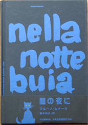 | ブルーノ・ムナーリの絵本を一度知ったら、深みにはまる。それは手に入りにくく、ますます見たくなる。「闇の夜に」は、日本語版も河出書房新社から出ているのだが、品薄で入手困難のようだ。「霧の中のサーカス」を新しく買い求めることから始まった、ムナーリ作の絵本探しは、半ば意地になってきた。先日、やっと「闇の夜に」を手に入れて、今はもう、誰かに読み聞かせたくてしようがない。 この絵本の主人公は誰だろう。それは、絵本には出てこない。この絵本を見ている私たちこそが、主人公なのだから。ブルーノ・ムナーリの道案内で、私たちは短いけれど深い旅に出る。自分が、今まで経験したことのない、不思議な感覚の世界に連れて行かれる。 …つづきへ |