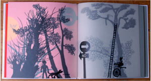 サーカスを通り過ぎると、家路につくことになる。それは、また霧の中である。帰り道は、森の中のようだ。また視界10M。目を凝らしながら、道を探して進む。トレーシングペーパーの表と裏に描かれた草木が、さっきの興奮を、急に冷ましてくれる。裏表紙を閉じたときには、「あれは、夢だったのかなあ・・・」と思わせるような、不思議に感傷的な気分になる。 |