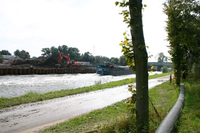 古くからの川の流れをまっすぐに直す工事が進行中。 |