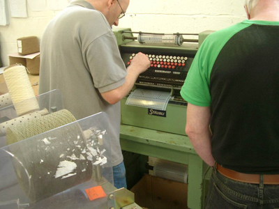 | パンチカードを実際に打っているのを見るのは初めて。下書など何もなく打っていきます、訂正とかできるのかな。 |