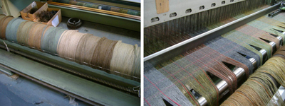 | これからLisetteでジャケットに使われる生地。ナチュラル(染色をしていない)の生地は微妙な色目が魅力、シェットランドの羊からとれたもののみ、ナチュラルの糸に使います。 |