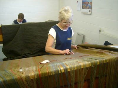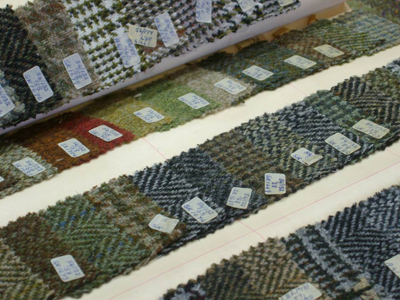| スティーブンがこのミルを買取った際に引継いだのは、100余りのエステートツイードの顧客であったそうです。 Estate TweedというのはEstate(領地)を持つ貴族が、家族やその使用人のために特別に誂える洋服に使われるウール布地のことを指します。家族のハンティングジャケットのためだけであったり、使用人の仕事着にする場合やら、その用途はエステートによっていろいろだそうです。もちろんそれぞれのパターンは登録され、勝手にコピーしたり使用することはできません。 パターンはそれぞれのエステートにある自然の色をモチーフにしていることが多いので、緑や黄土色といったものが結果として多いそうです。 引継いだ当初は伝統はあるけど新鮮味のない仕事と思っていましたが、そのうちにサービスの必要性と、何年かに1度は必ず注文が入る堅実性に気づき、今は英国中の顧客のエステートを車でまわっているそうです。 |