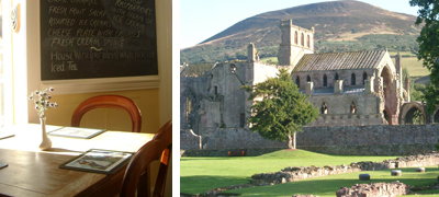 | 帰りには、お勧めのあったMelroseという町に立寄りました。廃墟になったアビーにはスコットランドの宗教的背景を物語るものがあったのかもしれません。町一番のティールームには、Estate Tweedのカラーモチーフになることも多いというThistle(あざみ)の花が。かえりみち、北国の夕日がなだらかな丘を時間をかけてゆっくりゆっくり染め上げ、次第に暗くなっていく様子に久しぶりの感動を覚えました。 |