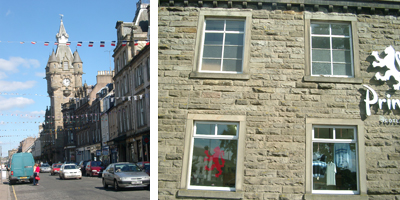 | エディンバラからHawickまでは車で約1時間。町で見にいくようなところはありますかと尋ねたら、「ここは田舎なのに田舎らしくない中途半端なところだからなにもないよ。」と断言されました。会話のなかにいろんなジョークが飛び出し、これもスコットランド流のユーモアだと思いましたが、町の風景は確かに意味のない国旗がはためいていたりして・・・。 そしてこのScottish Bordersにはたくさんのテキスタイル関連の工場や、デザイナーが存在し、Hawickは特にカシミア産業の中心として有名です。プリングルやピータースコットなどたくさんのカシミアメーカーの工場があり、ファクトリーショップをめぐるバスツアーもあるそうです。 |